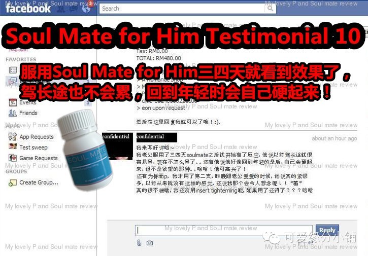 Soul Mate For Him是网上唯一有客户体检证实有效 + 政府认证无副作用的产品。100%有效和无副作用!